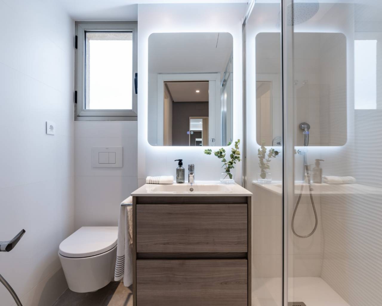 Áticos dúplex con vistas al mar en venta en Calpe Varios áticos dúplex en venta junto al mar en Calpe. Preciosos pisos justo en la bonita playa de arena de La Fossa y cerca de restaurantes y bares. Hay grandes supermercados a 400 m. El edificio en el que se encuentran los áticos tiene 10 plantas, ascensor y está adaptado para sillas de ruedas. Hay una piscina comunitaria para adultos así como una piscina especial para los más pequeños además de un jacuzzi. La planta baja de estos dúplex consta de un hall de entrada, 2 dormitorios y 2 baños (uno de ellos en suite). Ambos dormitorios tienen acceso a una terraza cubierta. Unas escaleras nos llevan a la planta superior. Aquí hay un amplio salón-comedor, cocina independiente, dormitorio con vestidor y baño en-suite, aseo de invitados y una enorme terraza en la azotea. Desde esta terraza hay estupendas vistas al Mediterráneo, al Peñón de Calpe y a las Salinas. Los áticos están equipados con aire acondicionado frío/calor. El precio es un precio de salida. También hay pisos de 1, 2 y 3 dormitorios a la venta en el edificio (refs. CA.A-037, CA.A-028 y CA.A-027). La disponibilidad de los pisos varía de un día para otro. No dude en ponerse en contacto con nosotros para obtener la información más actualizada. Las fotos son de la casa piloto (2 dormitorios) y muestran el aspecto que pueden tener los pisos después de la renovación. Cada piso difiere en calidad, mobiliario, vistas y precio.