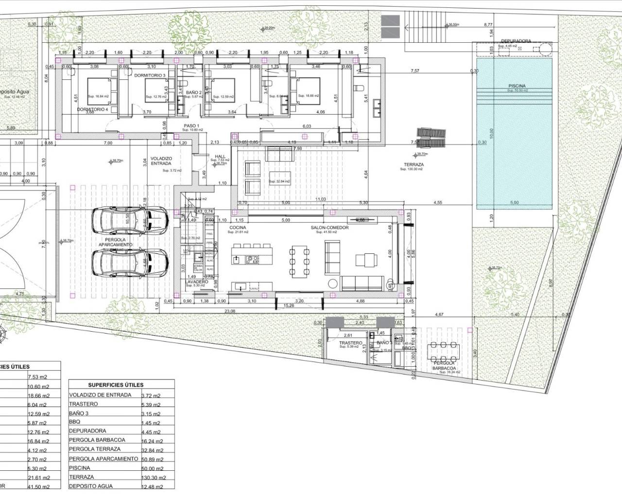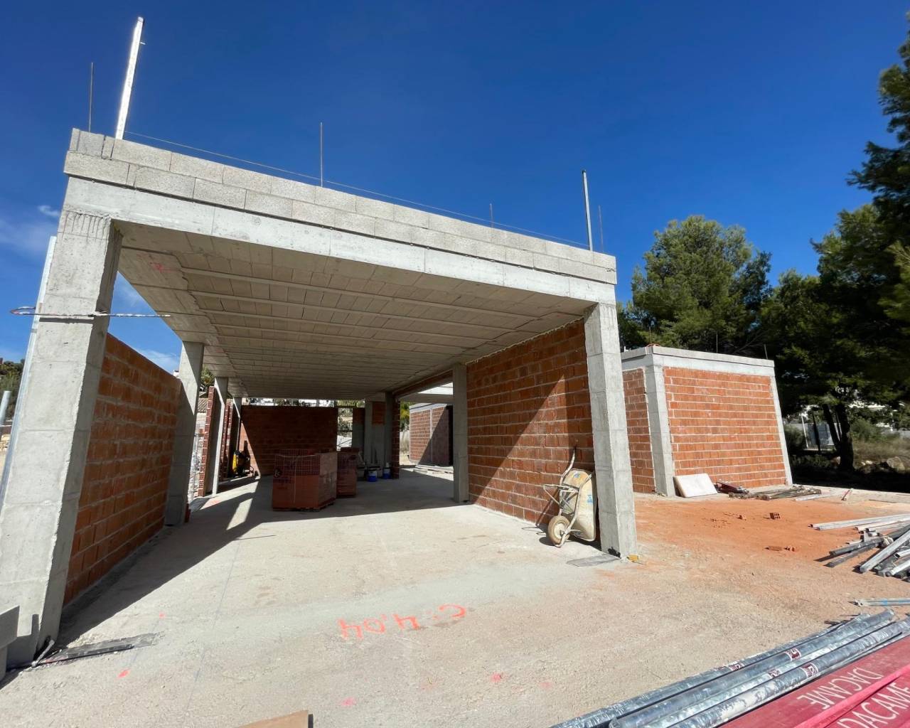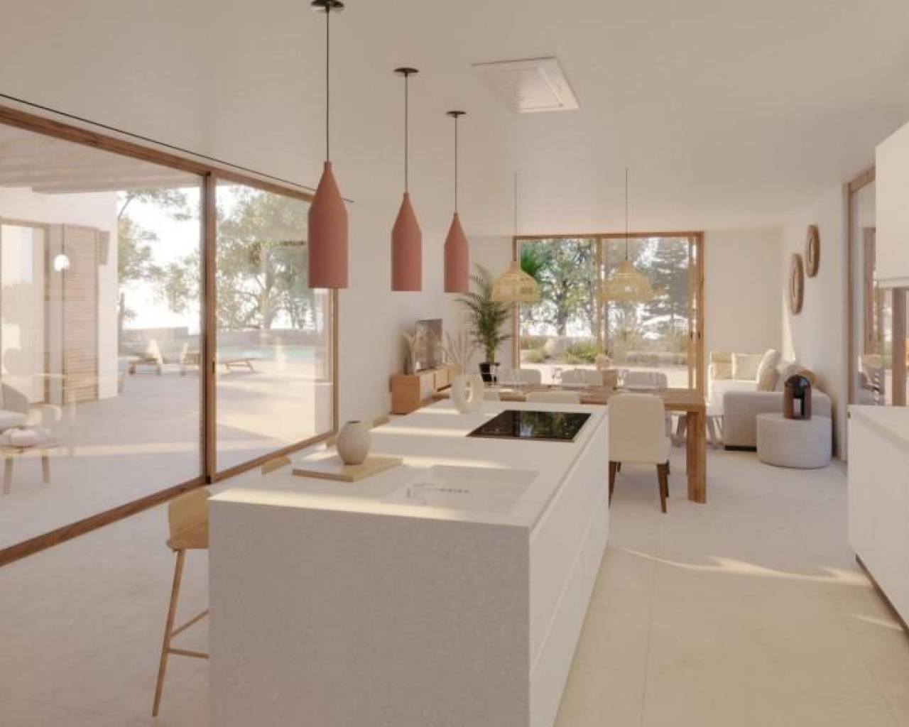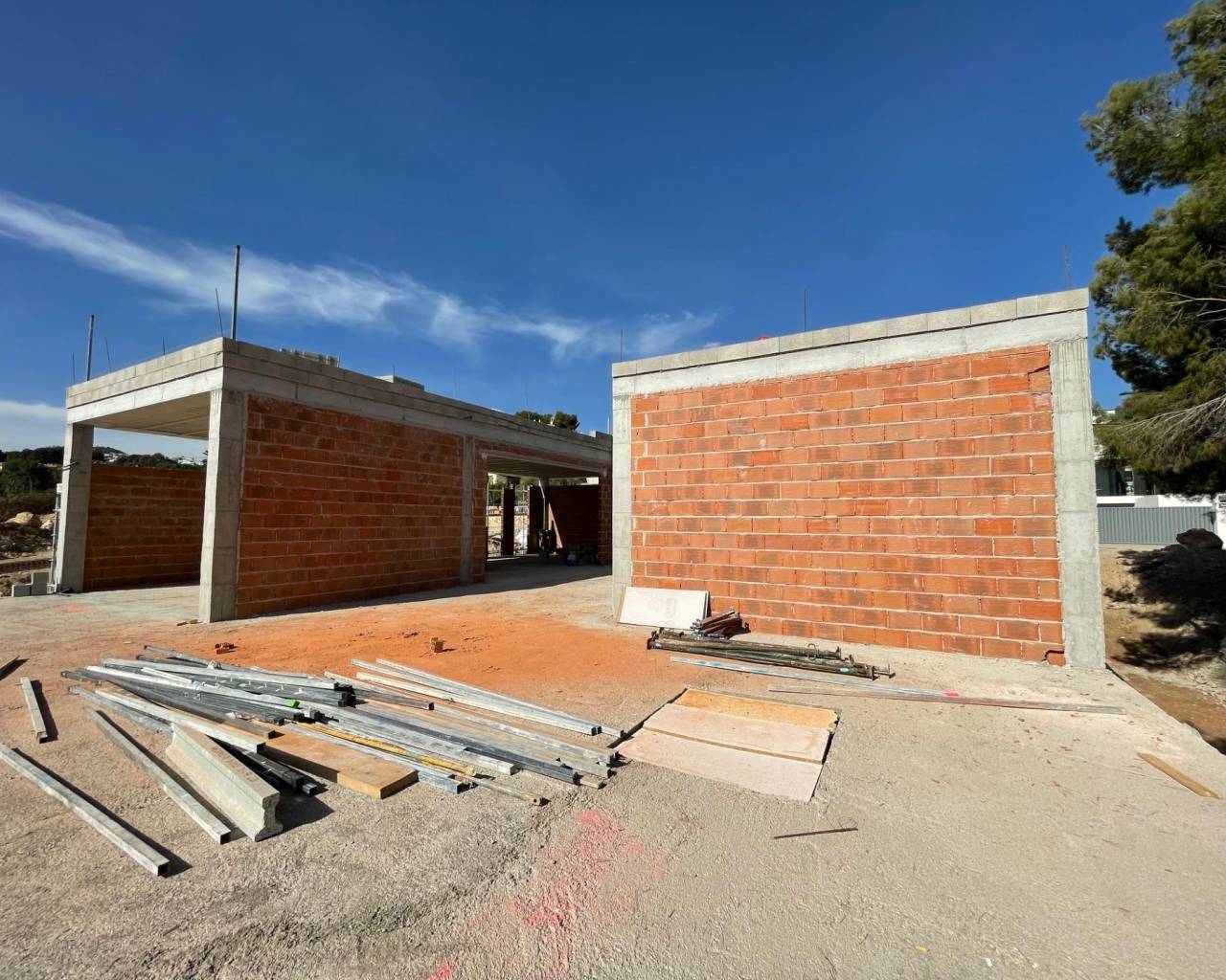 Villa de nueva construcción en Moraira en una planta. Se vende villa de nueva construcción en Moraira con 4 dormitorios y 3 baño todo en una planta con una distribución bien pensada. Se entra por la puerta principal desde la zona de aparcamiento en el espacioso vestíbulo con aseo de cortesía y guardarropa. Entrando el vestíbulo a la derecha entramos la cocina con lavadero anejo, comedor y salón amplios con grandes ventanales que dan al patio, jardines y la zona de la piscina de 50m2. A la izquierda del vestíbulo entramos en la zona de las habitaciones, donde el dormitorio principal con su baño en suite tiene acceso al patio y la zona de jardines y piscina y los demás dormitorios comparten un cuarto de baño. En el exterior encontramos ademas una pérgola de barbacoa, cocina de verano, pérgola para aparcar dos coches. Se halla en un barrio de casas de lujo, una zona de fácil acceso, a poca distancia de Moraira, a unos 20 minutos andando al pueblo y sus playas. Supermercado y zonas de ocio muy cerca. Pide cita en nuestra oficina para ver todas las calidades y planos de esta villa nueva Moraira. Villa de nueva construcción en Moraira en una planta CARPINTERÍA EXTERIOR: De Aluminio imitación madera de primera marca nacional y perfilería con rotura térmica, sección acristalamiento CLI-MALIT de seguridad 6+6/16/4+4. Todas las ventanas con tapajuntas decorativo y herrajes acorde con el acabado. COCINA: Mobiliario de cocina y lavadero, diseñado por la dirección técnica, con muebles altos y bajos en LACA BLANCA mate y TABLERO MELAMÍNICO DE ROBLE, encimera de MÁRMOL. La cocina irá equipada con placa de inducción, extractor filtrante de humos de funcionamiento silencioso, horno y microondas de marca SIEMENS o similar. Fregadero de acero inoxidable integrado en encimera y con grifería con flexo CLIMATIZACIÓN: El sistema de climatización instalado será el sistema AEROTERMIA para aire frio-calor y calefacción por suelo radiante ó radiadores en toda la vivienda y agua caliente sanitaria con acumulador. La casa se entrega con muebles y el jardín terminado con plantas autóctonas y riego automático. Fecha de entrega: antes del verano 2024