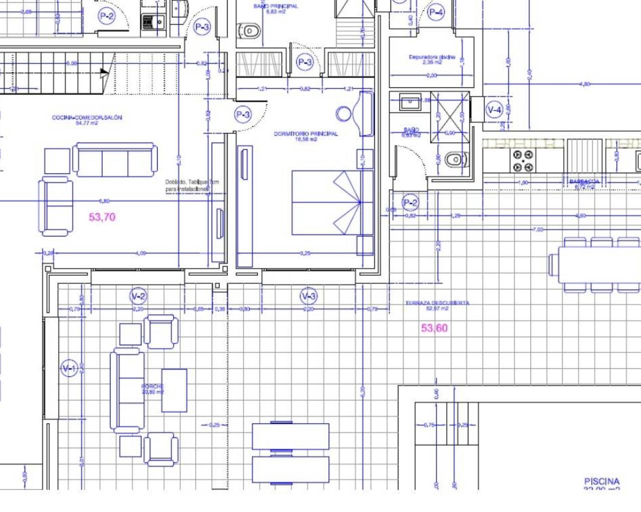 Exterior: piscina, terraza cubierta, cocina de verano cubierta, aseo y aparcamiento.