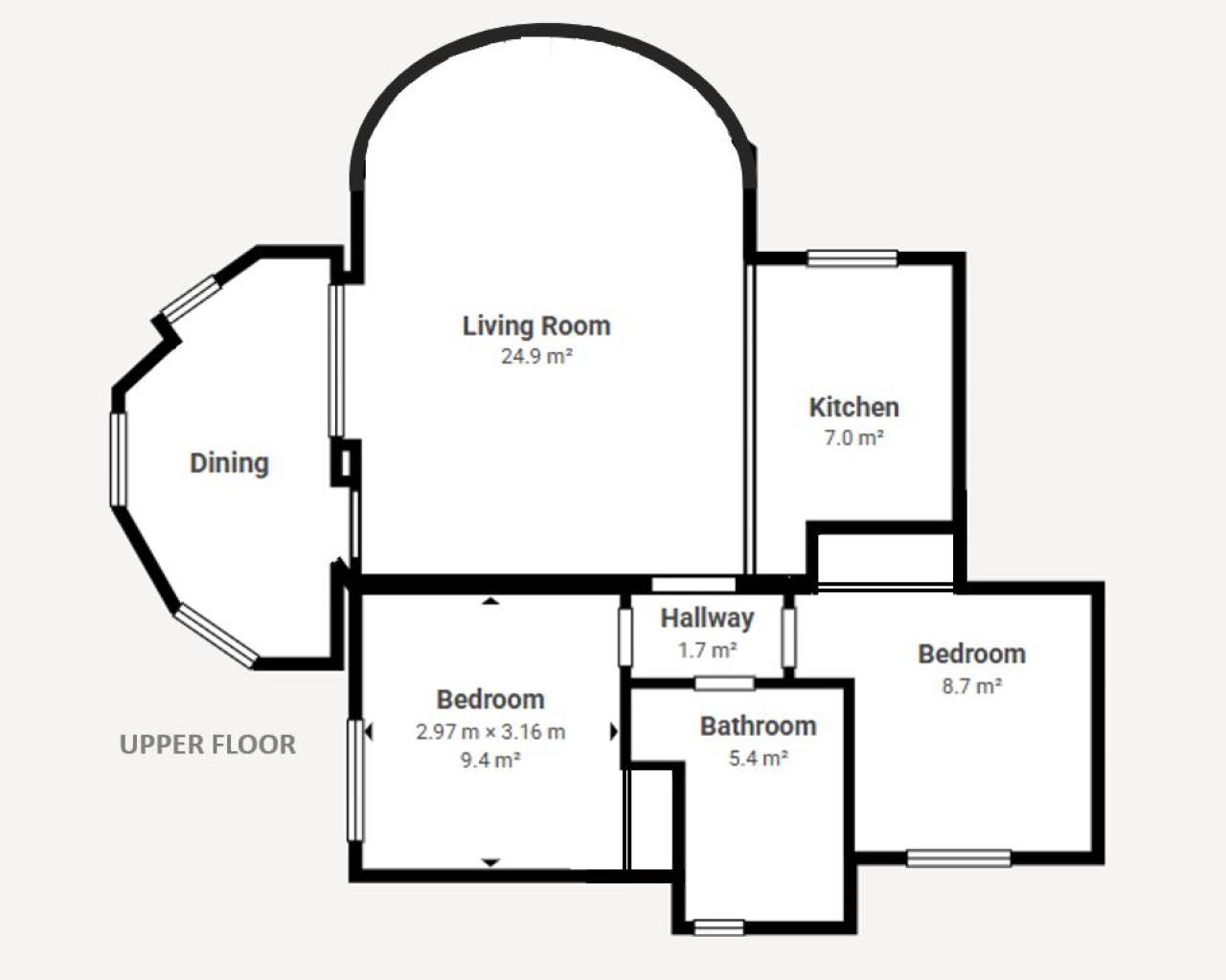 La vivienda principal se encuentra en la planta superior e incluye una terraza acristalada con vistas despejadas, un amplio y luminoso salón-comedor de planta abierta con chimenea, una gran cocina totalmente equipada, dos dormitorios dobles con armarios empotrados y un baño completo.