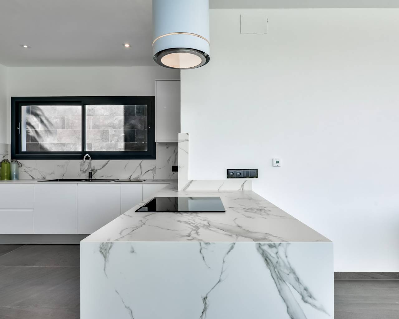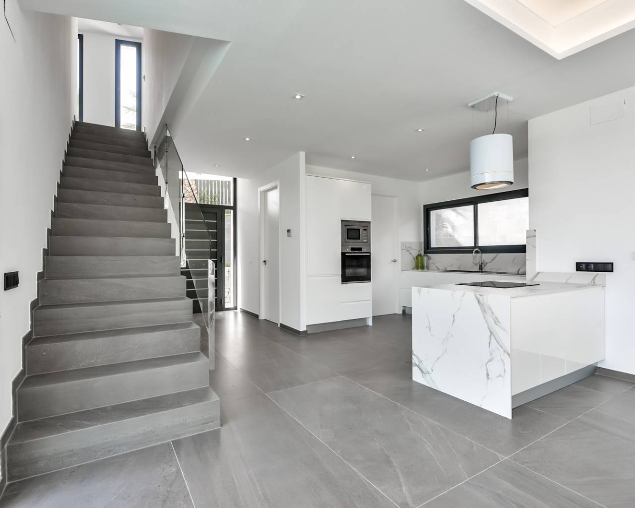 Impressionante villa moderne de luxe avec vue ver en vente à Javea. Impressionnante villa de luxe moderne dans un emplacement privilégié avec une vue sur la mer - Urb. Tosalet 5, Javea La propriété offre une vue imprenable sur les talons verts jusqu'à la mer. Par temps clair, vous pouvez regarder sur la Méditerranée à Ibiza. L'architecture moderne avec des formes épurées et des lignes droites, intéressante combinaison d'éléments classiques et des matériaux d'avant-garde font le cœur des amateurs d'architecture battre plus vite. Au sous-sol il ya un double garage avec porte automatique et une zone de sous-sol spacieux. Le rez de chaussée est divisé en un grand salon - salle à manger, cuisine avec buanderie attenante et un WC. Une grande terrasse couverte avec barbecue - région offre un endroit ombragé dans les mois d'été, à partir d'ici, vous pouvez profiter de belles vues sur la mer. La terrasse de la piscine ouverte avec une grande piscine, avec effet à débordement, des mesures d'entrée large et lumières sous-marines. A l'étage il ya 3 chambres spacieuses et 2 salles de bains. La chambre principale dispose d'une salle de bains privative. Toutes les chambres ont accès sur la grande terrasse de toit. Cuisine: La villa est équipée avec une cuisine entièrement équipée, plaque vitrocéramique, four, micro-ondes, lave-vaisselle et mobilier de haute qualité intégré. Chauffage - Eau chaude: chauffage est assuré par une pompe à chaleur avec le soutien de l'air ou de l'énergie solaire. Air conditionné: Installé système de conditionnement d'air centrale, qui distribue l'air refroidi les différentes zones du bâtiment. Jardin: Le jardin est mitoyenne par des murs en pierre, les terrasses individuelles sont plantées avec des plantes locales. L'irrigation à travers un système d'irrigation central. Terrain couverture: Le terrain est entièrement clôturé par des murs. Allée au garage avec un portail électrique, un autre accès depuis la rue sur le niveau de la porte d'entrée.