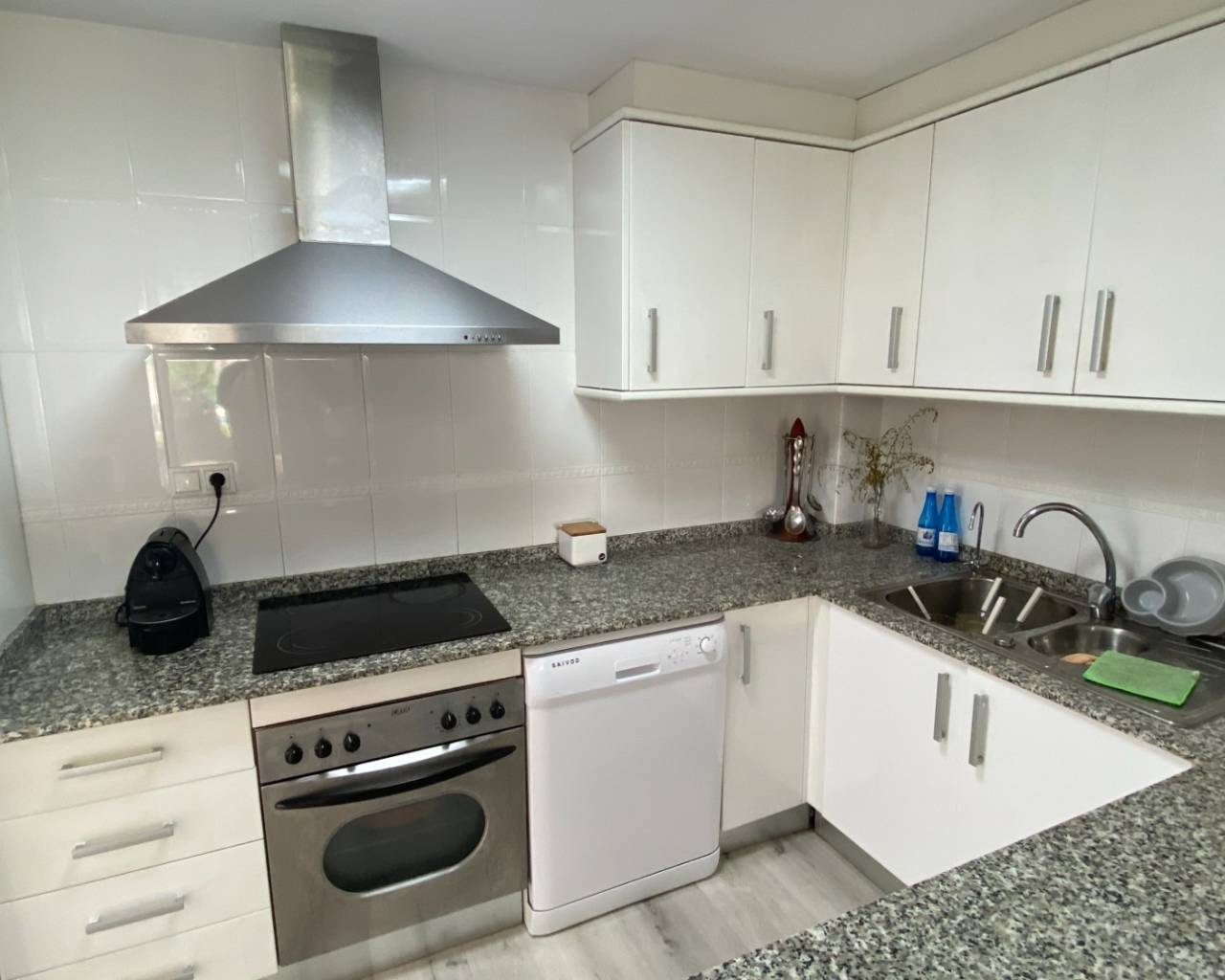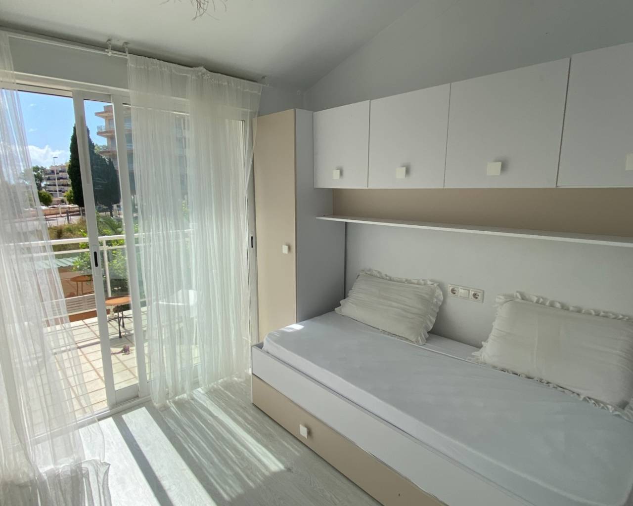 Modern townhouse located on a lovely complex within walking distance to the Arenal beach. Built over 2 levels comprises entrance hall, spacious lounge-diner with access to a covered terrace, 1 bedroom and bathroom. On the upper level are 3 bedrooms, 1 bathroom and 2 terraces. Hot and cold AC, storage room, private parking and padel courts.