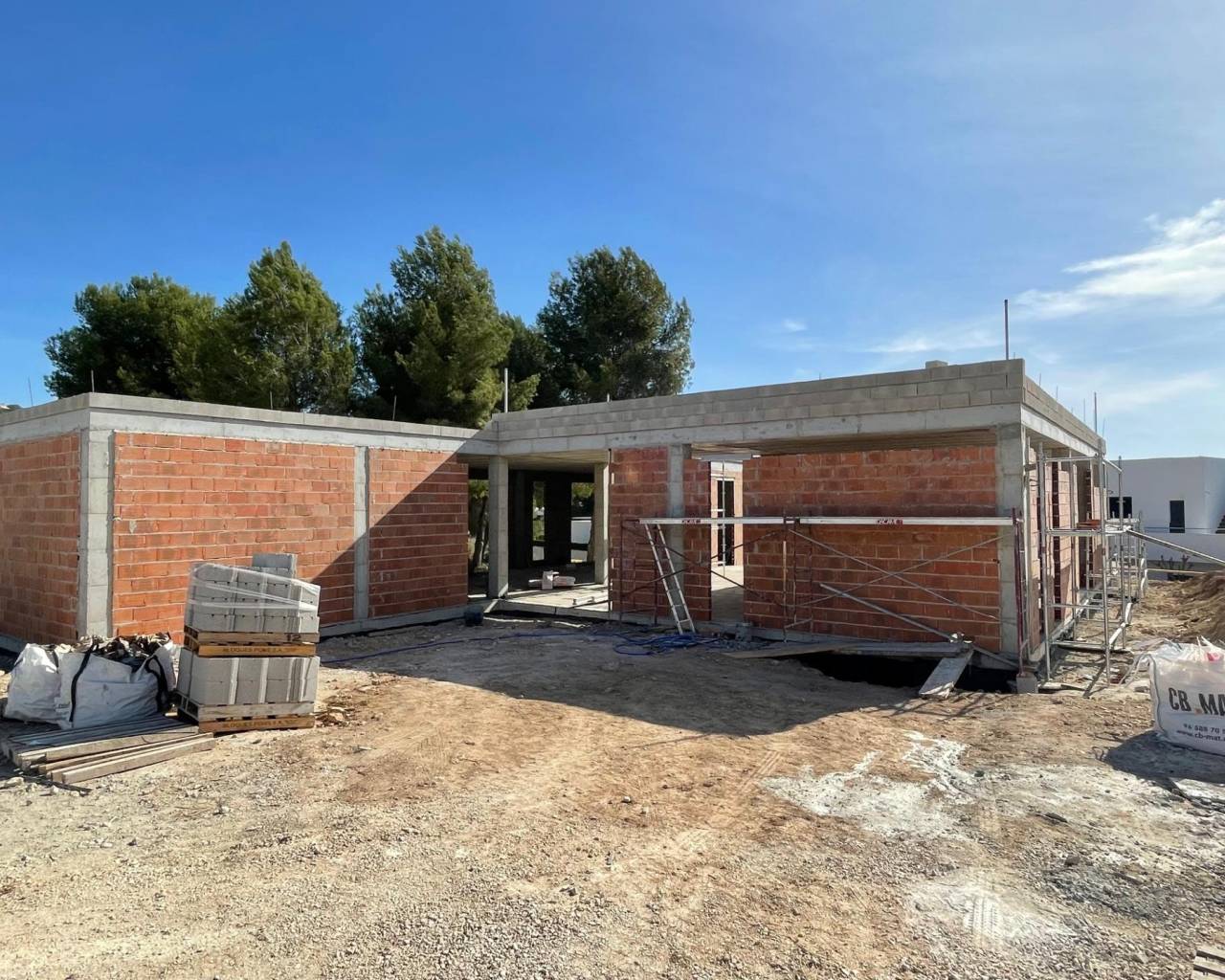New build villa in Moraira on one floor. New build villa in Moraira on one floor for sale in Moraira with 4 bedrooms and 3 bathrooms all on one floor with a well thought out distribution. You enter through the main door from the parking area into the spacious hall with guest toilet and cloakroom. Entering the hall to the right we enter the kitchen with annex laundry room, spacious dining room and living room with large windows that overlook the patio, gardens and the 50m2 pool area. To the left of the hall we enter the bedroom area, where the master bedroom with its en-suite bathroom gives access to the patio, the garden and pool area and the other bedrooms whcih share a bathroom. Outside we also find a barbecue pergola, summer kitchen, and a pergola to park two cars. It is located in a neighborhood of luxury houses, an area with easy access, a short distance from Moraira, about 20 minutes walk to the town and its beaches. Supermarket and leisure areas are very close by. Make an appointment at our offices to see all the qualities and plans of this new build villa in Moraira on one floor. EXTERIOR CARPENTRY: Aluminum imitation wood of the first national brand profiles with thermal bridge breakage, CLI-MALIT safety glazing section 6 6-16-4 4. All windows with decorative flashing and fittings corresponding with finishes. KITCHEN: Kitchen and laundry equipment, designed by the technical management, with high and low furniture in WHITE LACQUER and MELAMINE OAK BOARD, MARBLE countertop. The kitchen will be equipped with an induction hob, a silent-operating filtering smoke extractor, an oven and a SIEMENS or similar brand microwave. Stainless steel sink integrated into the countertop and with taps with flexo AIR CONDITIONING: The air conditioning system installed will be the AEROTERMIA system for hot-cold air and underfloor heating or radiators throughout the house and domestic hot water with accumulator. The house is delivered furnished and the garden finished with native plants and automatic irrigation. Delivery date: before summer 2024.