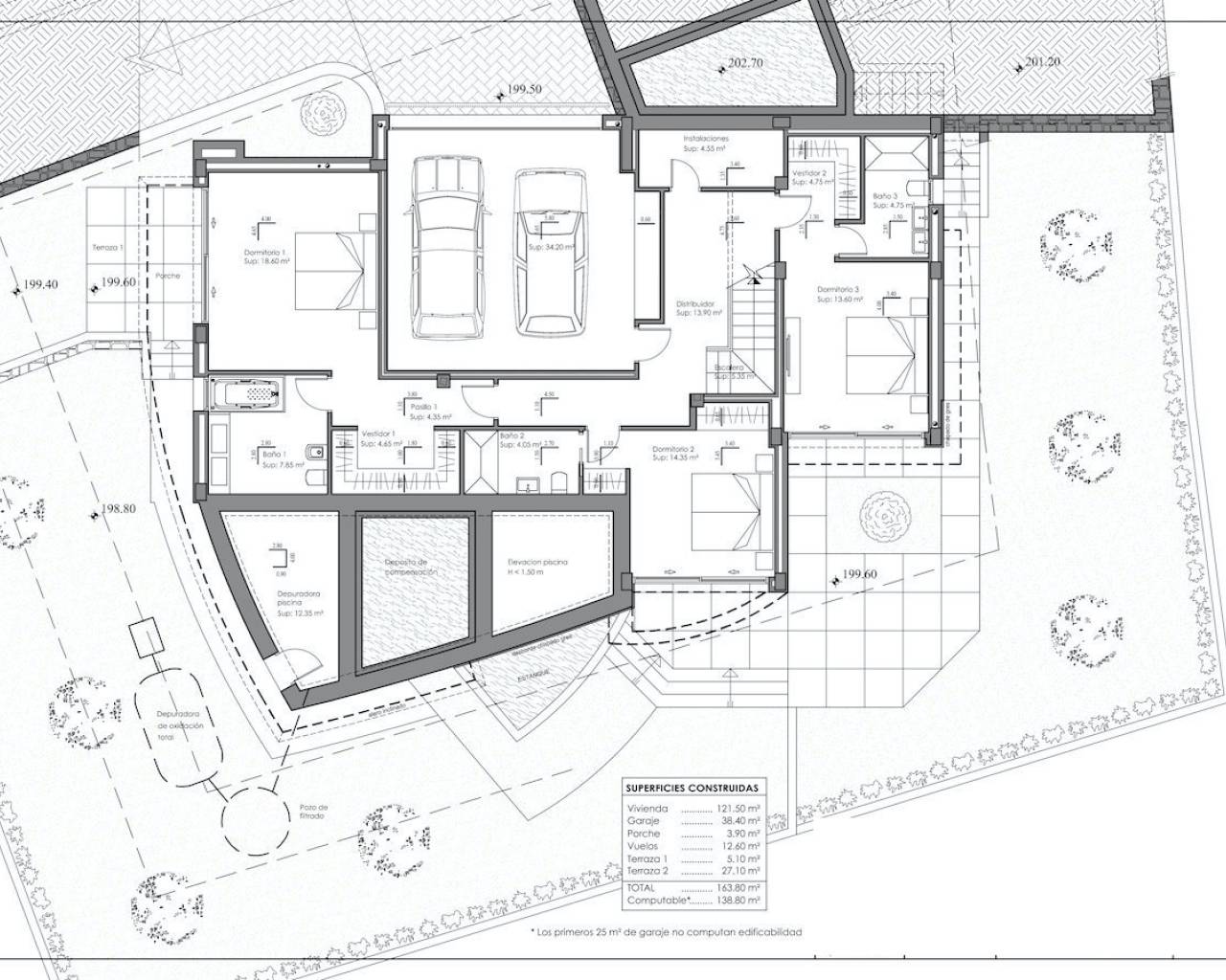 This luxurious, ultra-modern four-bedroom villa is located on a hill just outside the city, offering stunning panoramic views of the Mediterranean Sea and the Peñón de Ifach. Upon entering, the upper hall leads to a large integrated kitchen with dining space. Sliding glass doors open to a spectacular terrace with an infinity pool, from where you can enjoy magnificent views of the sea. On this same level, there is a bedroom with an en-suite bathroom, built-in wardrobes and access to the terrace, as well as a guest toilet conveniently located near the entrance hall. The lower level houses a garage for two cars with direct access to the house. Here is the master bedroom, which has a U-shaped dressing area, built-in wardrobes, a large en-suite bathroom and a private patio. Another bedroom with en-suite bathroom offers access to the terrace, complemented by a third bedroom also with access to the terrace, fitted wardrobes, an additional family bathroom. The villa will be delivered ready to move in, including luxury extras such as high quality appliances from Siemens and Bosch, non-slip tiles around the pool, Silestone work surfaces in the kitchen, automatic doors, alarm and access system, fully walled plot , mosquito nets, hot/cold air conditioning, underfloor heating via heat pump, electric blinds and more. Located in the province of Alicante, on the North Costa Blanca, Calpe benefits from proximity to three international airports less than two hours away by car. In addition, it has high-speed train services and first-class highways that connect the community with major cities. For beach lovers, the new owners will have several options within a 15-minute drive, including at least three beaches awarded the Blue Flag, a symbol of quality and cleanliness.