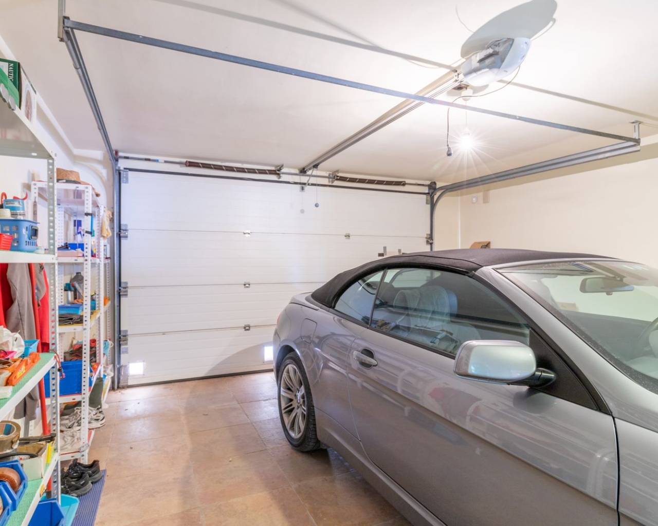 Completely private plot with mature Mediterranean style garden with native trees, terraces with sea and mountain views, 12x5m pool, garage for 2 cars, covered carport for 2 vehicles and further parking for multiple cars.
