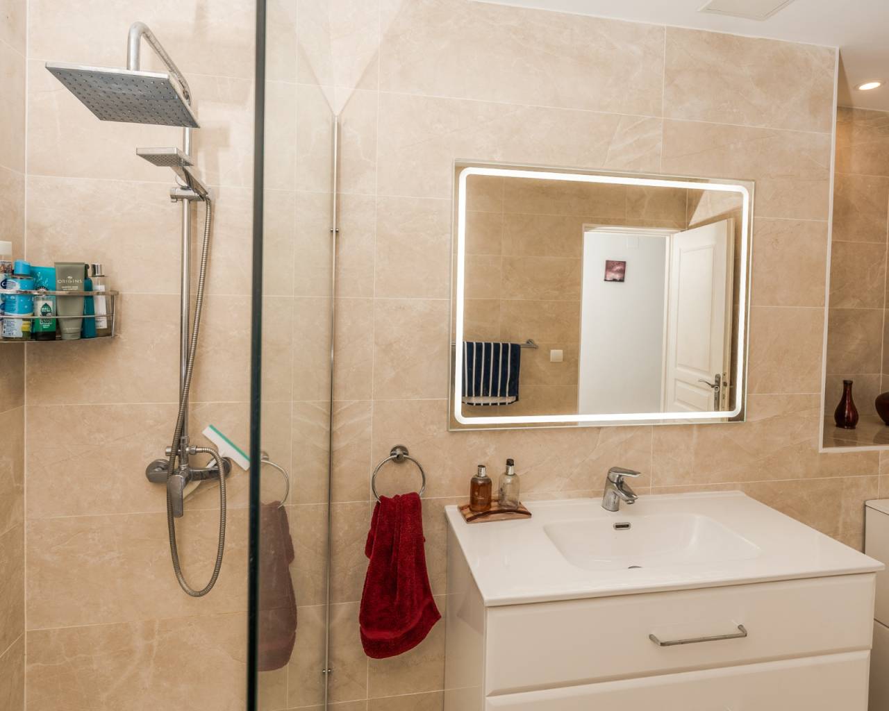 The lower floor offers 5 double bedrooms and a recently refurbished family bathroom. One of the bedrooms has a charming terrace with stunning views. Most of the bedrooms have fitted wardrobes and hot and cold air-conditioning.