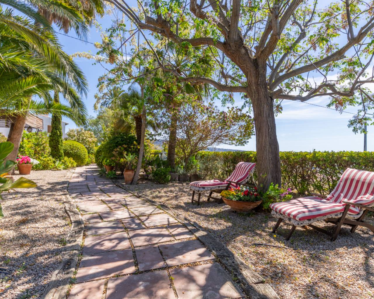 In between the 2 buildings is the garden, with mature plants and a relaxation area under the palm trees leading to the swimming area with a large non-slip terrace of more than 200m² surrounding the pool.