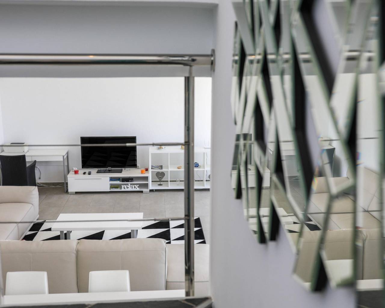 The guest apartment is accessed from this terrace and is also accessible via an external staircase directly from the parking area of the villa. The apartment (90m²) enjoys lovely views from the outside terrace and the lounge. A short flight of stairs leads to 2 double bedrooms and 2 bathrooms.