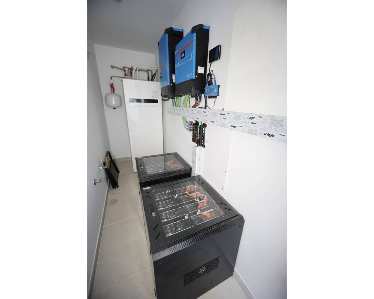 The house consists of two separate dwellings, one on each floor.Upper floor with underfloor heating.Air conditioning with heat pump on both floors.Fully equipped kitchens with Bosch appliances.Refrigerator, induction hob, dishwasher, extractor hood, oven and washing machine.Silestone worktops in kitchens.Silestone worktops in kitchens.LED lighting.Bathrooms with glass shower screens and washbasin units.10 kW photovoltaic solar installation + 19.2 kW/h batteries (8 LV lithium batteries), with the possibility of autonomous operation.Outdoor shower with hot water.Technal aluminium exterior carpentry, with Climalit and security glass.Mosquito nets in bedrooms.Electric blinds.Security entrance door.White lacquered interior woodwork.Fitted wardrobes with drawers and rail.Fully finished garden with weed control mesh and red marbled gravel withprogrammable drip irrigation installed.Paved access with natural stone from the street.Two separate outdoor parking spaces.Stone walls around the entire plot.Terraces with steel and glass railings.Fully fenced plot with access gates with intercomand remote control.Porcelain stoneware tiles.Alarm installed.One year of pool and garden maintenance included.Translated with DeepL.com (free version)