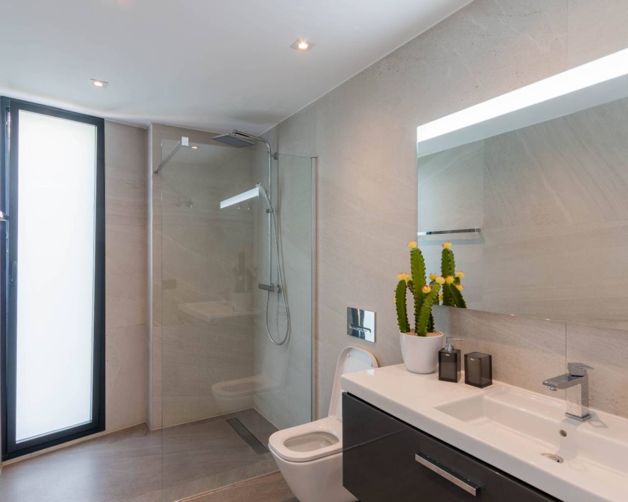 New ultra modern villa built over 2 levels and comprises on the ground floor: spacious lounge-diner with fully equipped kitchen, utility area and a guest cloakroom. Floor to ceiling glass doors with access to the pool and terrace area. On the upper level are 3 double bedrooms, 2 bathrooms (one ensuite), all with access onto the large roof terrace. The basement has a garage with space for 2 cars and electric doors.